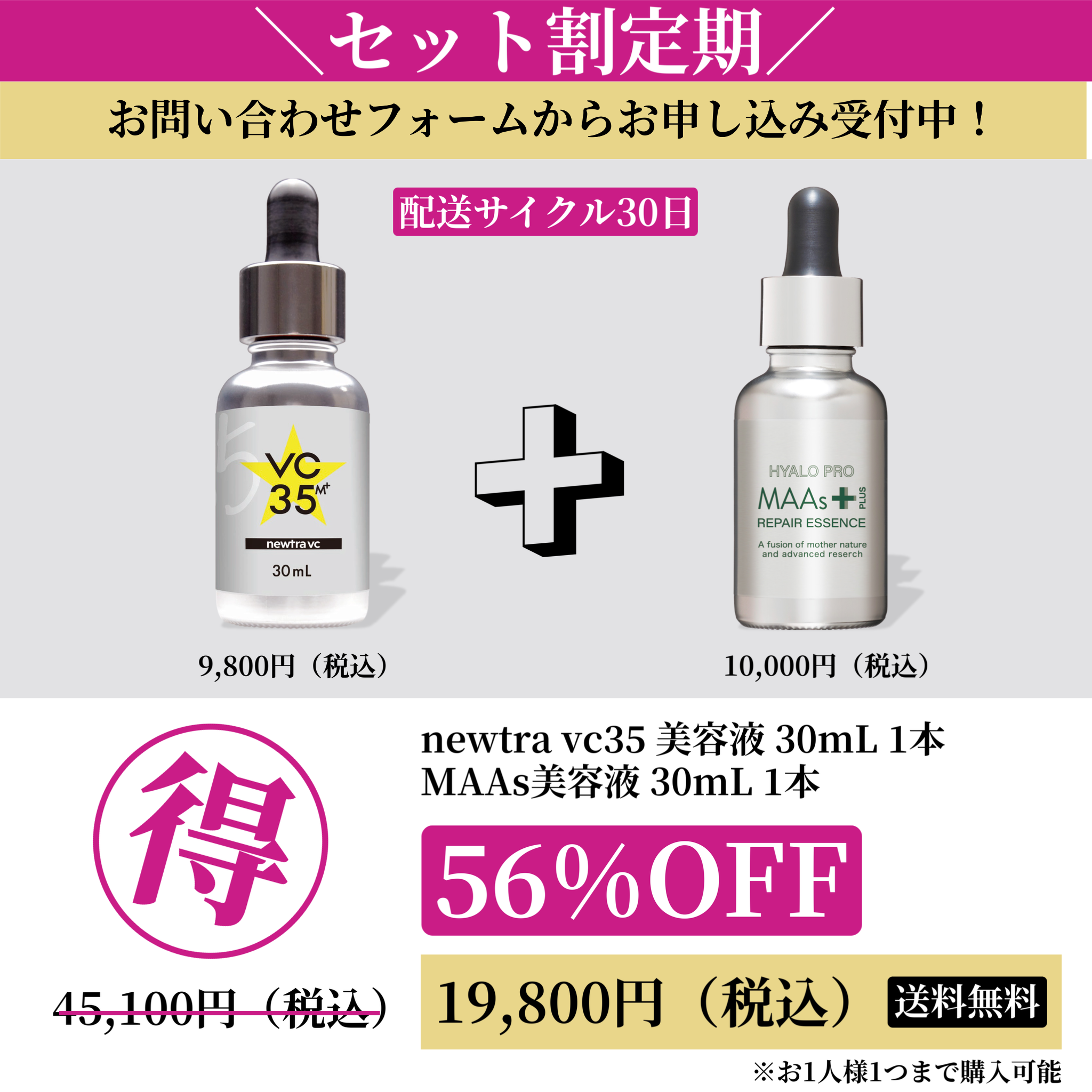 【セット割定期内容】newtra vc35 30mL ¥9,800(税込)1本+MAAsリペアエッセンス30mL ¥10,000(税込)1本